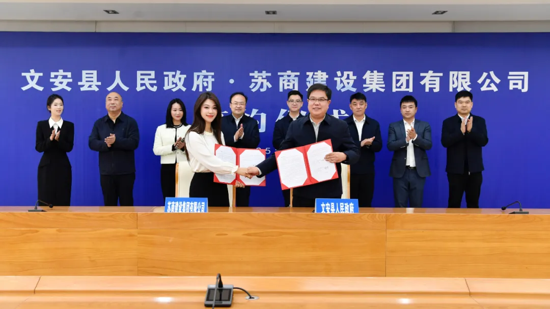 文安縣委常委、辦公室主任盧國峰,縣政府副縣長劉成,縣政府辦公室、發(fā)改局、住建局、城管局、水務(wù)局、交通局、縣招商促進(jìn)中心,城發(fā)公司等相關(guān)單位負(fù)責(zé)人;蘇商城建經(jīng)營總裁羅江,工程中心總經(jīng)理尚新勇,蘇商集團(tuán)經(jīng)營中心總經(jīng)理劉久榛,蘇商城建總裁助理周冰雪等參加簽約儀式。